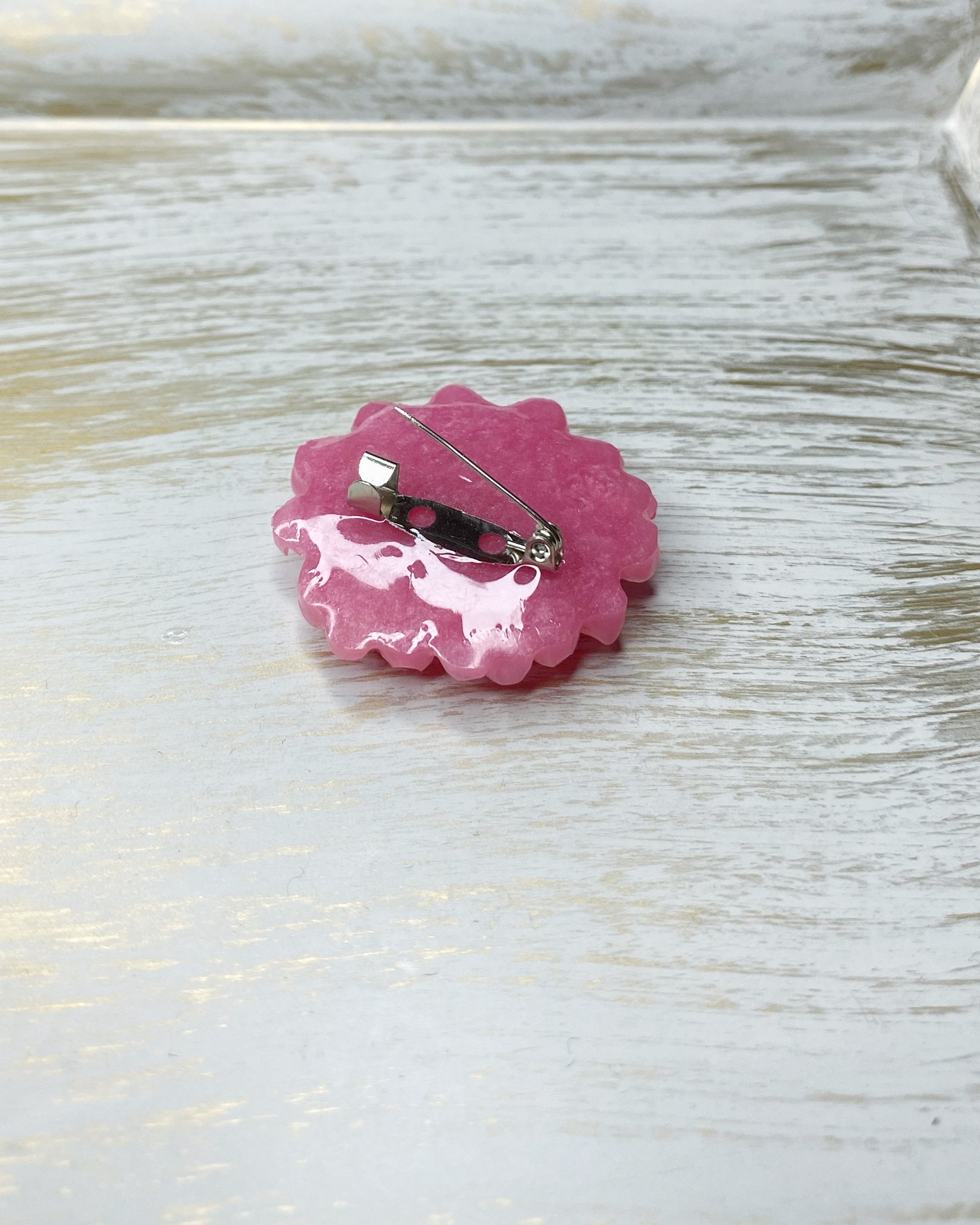 Broșă realizată manual din rășină, disponibilă în mai multe culori. Fiecare model este unic.
