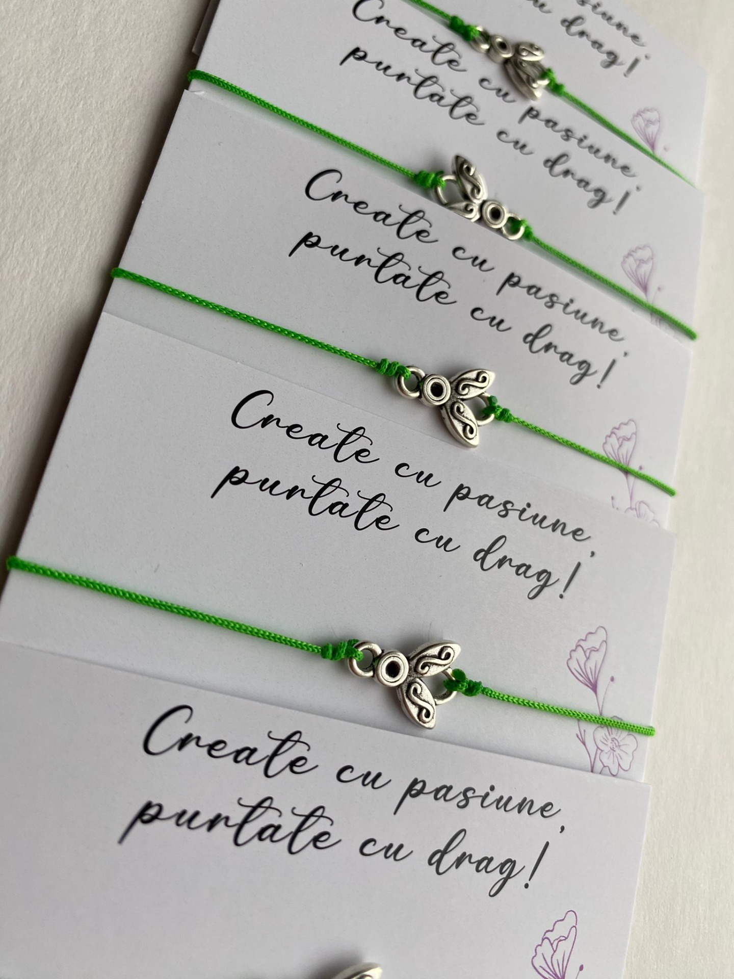 Accesoriu realizat manual, pregătit pentru a fi oferit ca mărțișor. Design simplu, ușor de purtat zilnic. Fiecare piesă este montată pe cartonaș și poate fi trimisă direct cadou.
