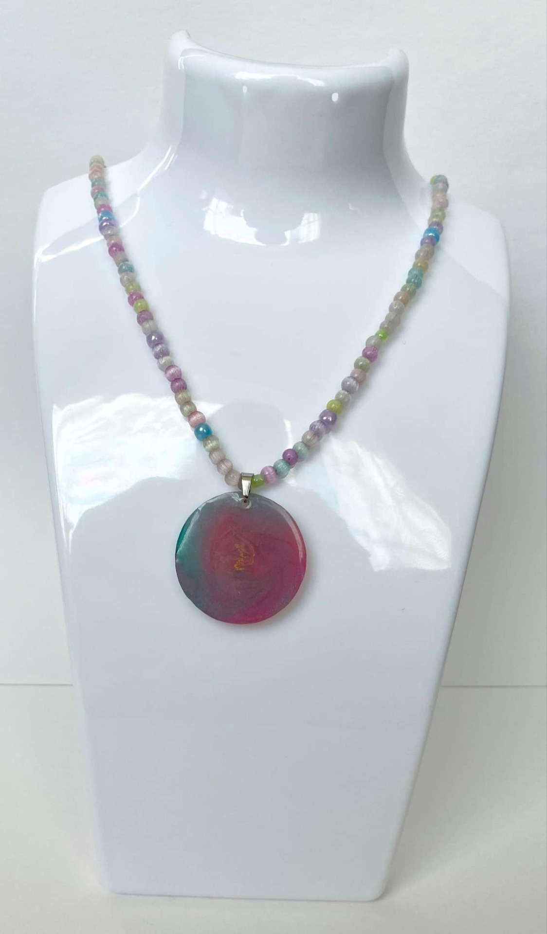 Colier din rășină epoxidică, oțel inoxidabil, cu mărgele de sticlă, închizătoare tip lobster, în nuanțe de multicolor 35,00 RON 0,00 RON