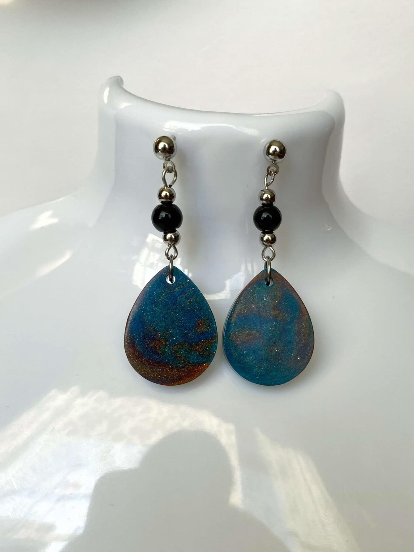 Cercei din rășină epoxidică, oțel inoxidabil, cu mărgele de sticlă, închizătoare cu șurub, în nuanțe de albastru 20,00 RON 0,00 RON