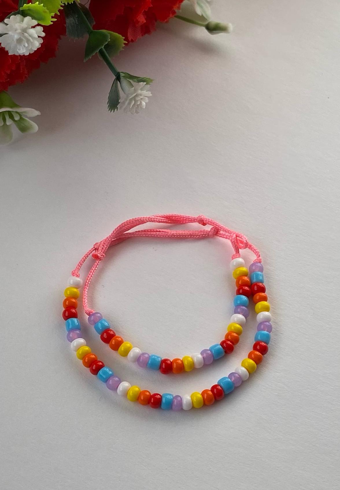 Brățară reglabilă din șnur satinat, acril, cu mărgele acrilice, în nuanțe de roșu (nou nascut) 15,00 RON 0,00 RON